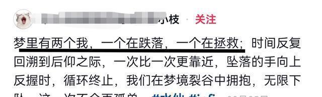 2025年2月份的时候,小枝曾发文表示,梦里有两个自己,一个在跌落,一个在拯救,其内心的状态让人唏嘘、担忧,情况并未好转,而是愈发糟糕了。